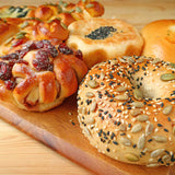 Our Marbled Rye Bagels are a delightful twist on a classic! Soft and chewy with a rich, earthy rye flavor, these bagels are beautifully swirled with a hint of sweetness from honey. Infused with aromatic caraway seeds, each bite is a perfect balance of savory and subtle spice. Perfect for breakfast, brunch, or any time you crave something hearty and unique!