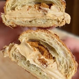 Indulge in our buttery croissant filled with rich Lotus Biscoff spread for a delightful twist on a classic treat. Each bite offers a perfect balance of flaky texture and creamy, caramelized flavor. Perfect for breakfast or a sweet snack, this croissant pairs beautifully with your favorite coffee or tea. Enjoy a taste of luxury with every bite!