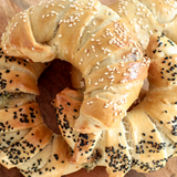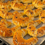 A delicious twist on a beloved Eastern European classic, Pogača! This golden, flaky pastry is filled with melty mozzarella, aromatic garlic, and fresh parsley, all drizzled with a touch of honey for the perfect sweet-savory combo. Baked to perfection, it brings centuries of tradition straight to your tastebuds with every bite. Whether enjoyed as a snack or a treat, Pogača is a modern spin on a timeless favorite!